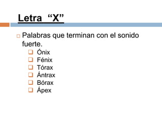 La letra X es la vigésimo octava del abecedario. Palabras con X y 4 letras 29 palabras. Lista de palabras con I O X y Z ordenadas por frecuencia en idioma español.