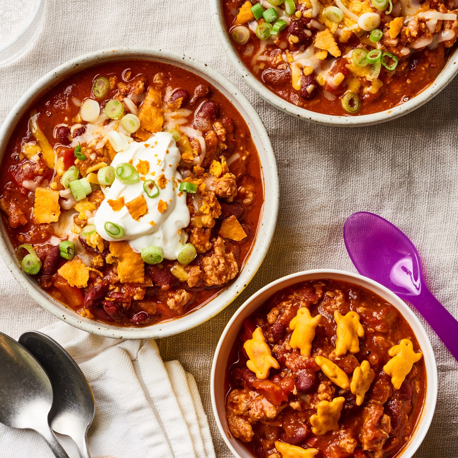 Easy Mild Kid Friendly Chili With Ground Turkey On My Kids Plate